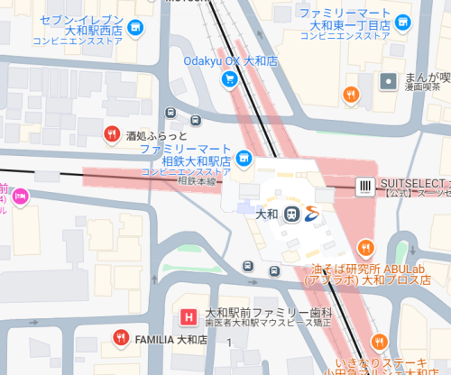 小田急線・相鉄線大和駅出て、なでしこ広場方面に徒歩1分。